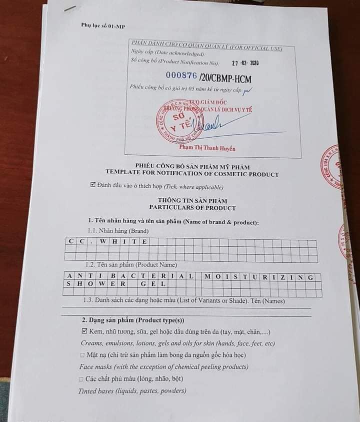 Sản phẩm đã được Sở y tế công bố lưu hành trên toàn quốc