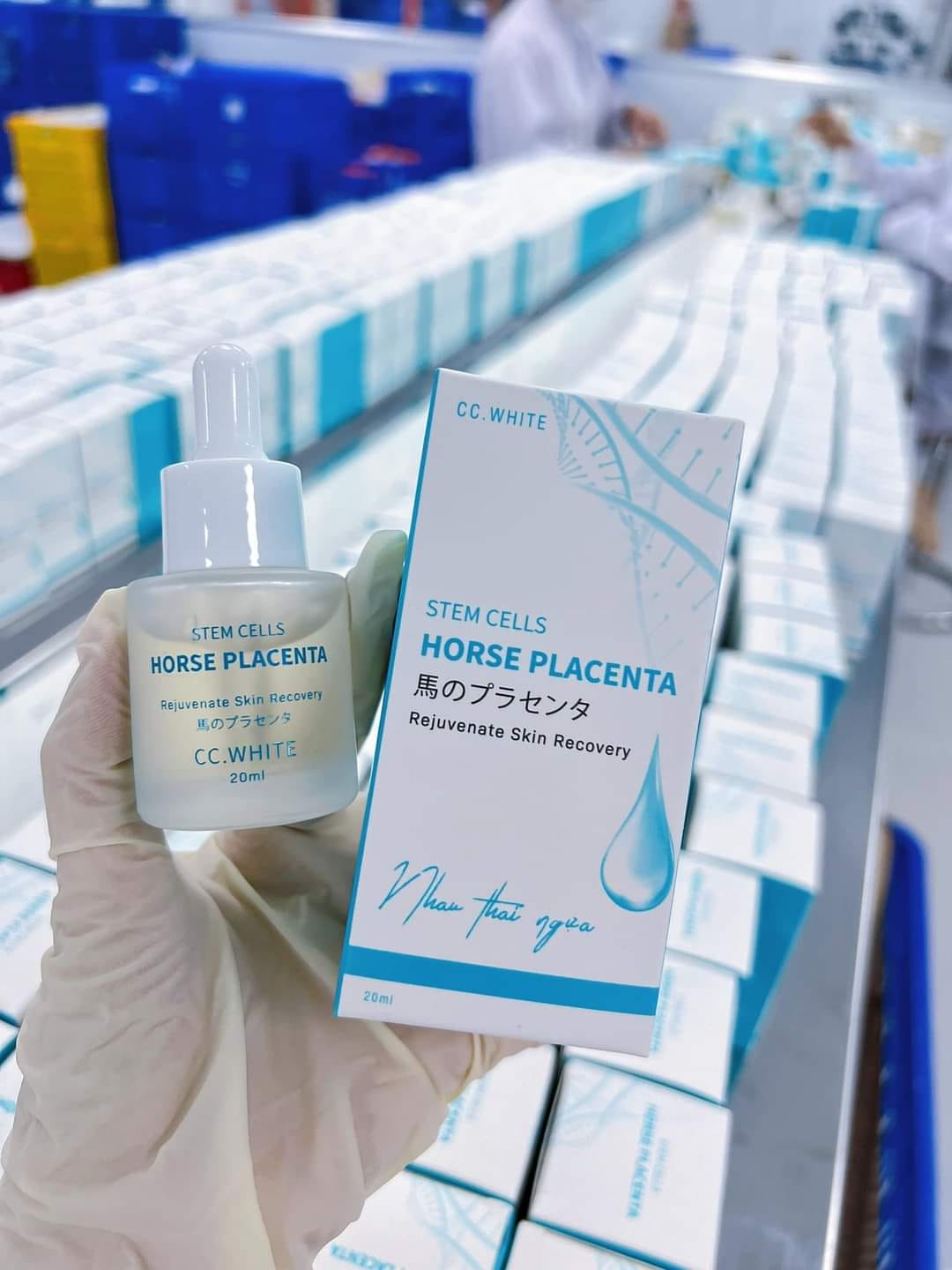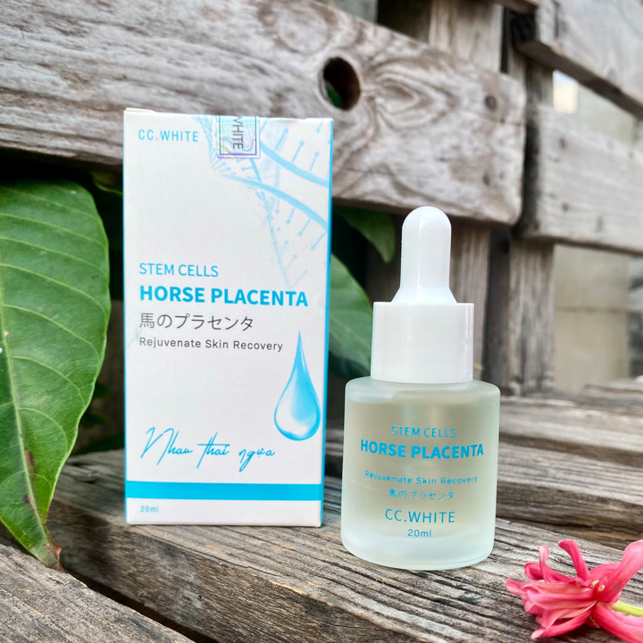Serum tế bào gốc nhau thai ngựa chiết xuất từ nhau thai ngựa nhập khẩu từ Nhật Bản kết hợp cùng Niacinamide, Collagen giúp dưỡng trắng, mờ thâm nám sạ tàn nhang, collagen tươi giúp da được bổ sung collagen thiếu hụt làm da căng bóng, mịn và ngừa lão hóa sớm. Không bị kích ứng da khi sử dụng sản phẩm