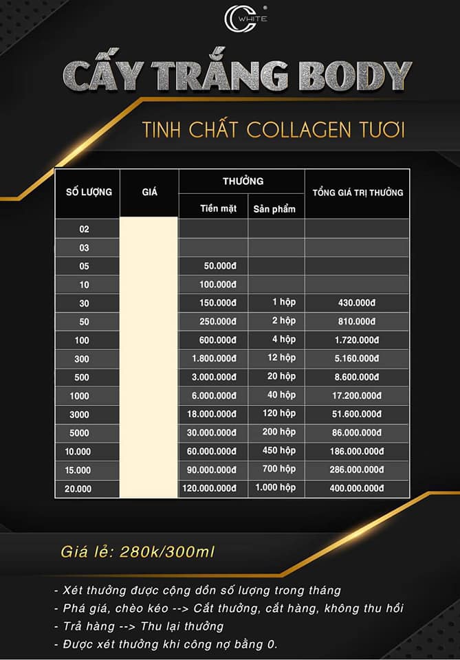 Kinh doanh Cấy trắng Body Collagen CC White 480k