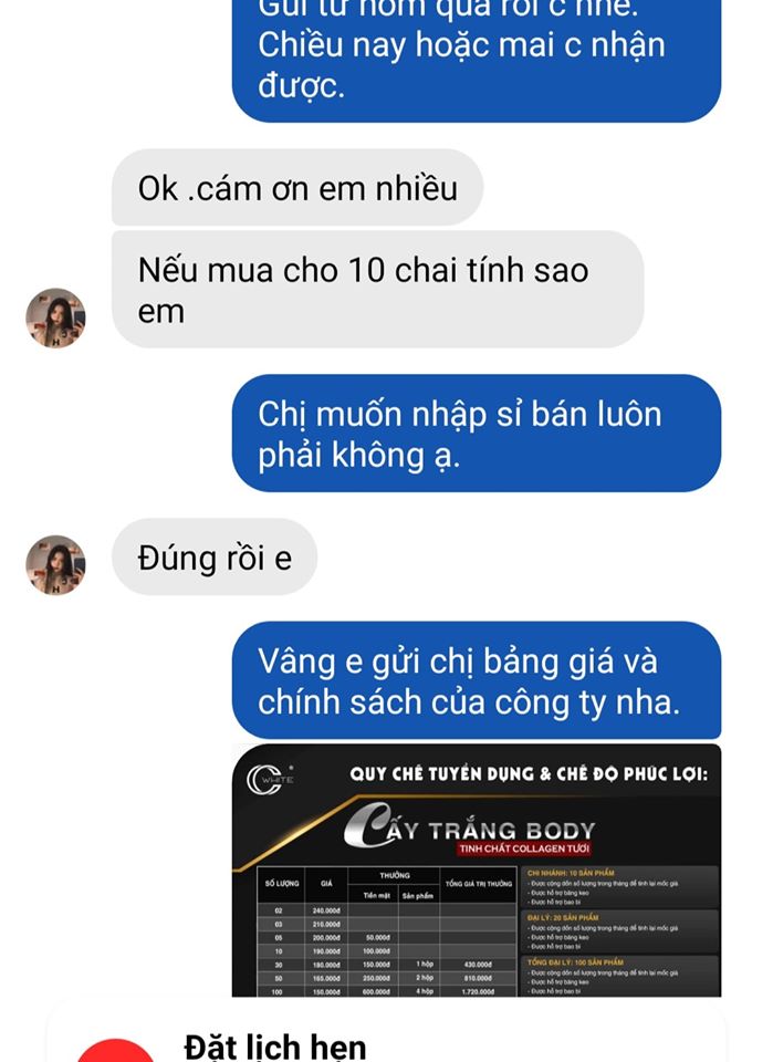 Công ty Mỹ phẩm Cc White mong muốn cấy trắng Body Collagen tươi X3. Mong muốn khi ra sản phẩm này cũng sẽ giúp nhiều chị em thay đổi kinh tế của mình, chị em văn phòng, mẹ bỉm sữa ở nhà ai cũng có thể bắt đầu công việc kinh doanh online với số vốn ban đầu chỉ 480.000 với chính sách cực kì ưu đãi, hấp dẫn.