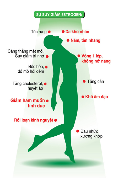 - Về sinh lý: âm đạo trở nên khô hạn, giảm ham muốn với bạn đời, khó thụ thai.
