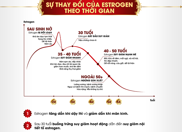 Tuy nhiên, nội tiết tố sẽ không dồi dào mãi, bước qua tuổi thanh xuân, dưới tác động của thời gian, cùng những lần mang thai, sinh nở hàm lượng hormone sẽ bắt đầu giảm dần, cứ 10 năm thì giảm 15% và đến khi 50 tuổi chỉ còn 10% so với thời con gái.