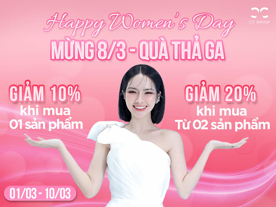 Cảm ơn Khách hàng đã đồng hành cùng CC White trong thời gian qua, CC White tri ân khách hàng từ ngày 01 -10/3 giảm 10-20% tất cả các sản phẩm.